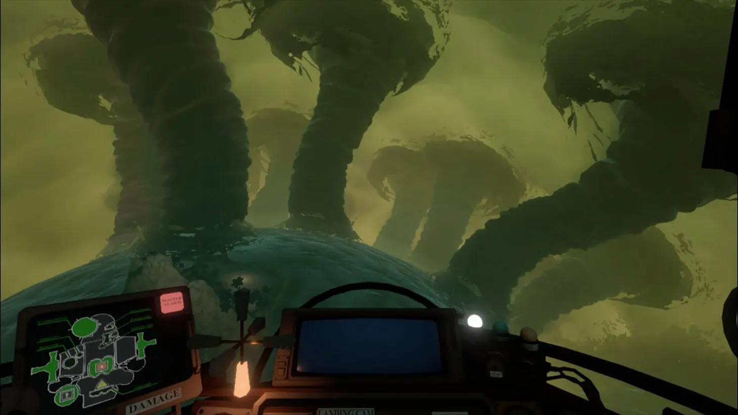 The various puzzles littering interstellar space are also vexing in a way that inspires more exasperation than enjoyable challenge. Some of them might sound nifty on paper, but they’re often laborious in execution. One requires that you be at a certain place at a certain moment during the time loop to gain access to one of those information caches. What this amounts to is you waiting around for a long time until that area is accessible, kicking up space dust or twiddling your thumbs until the window arrives. Other puzzles give way to annoying platforming sequences that require nimble dexterity, and where a single mistake means you have to restart the loop all over again. I rarely felt any sense of accomplishment from overcoming these obstacles, just relief that I had earned a brief reprieve from the worst part of experience.