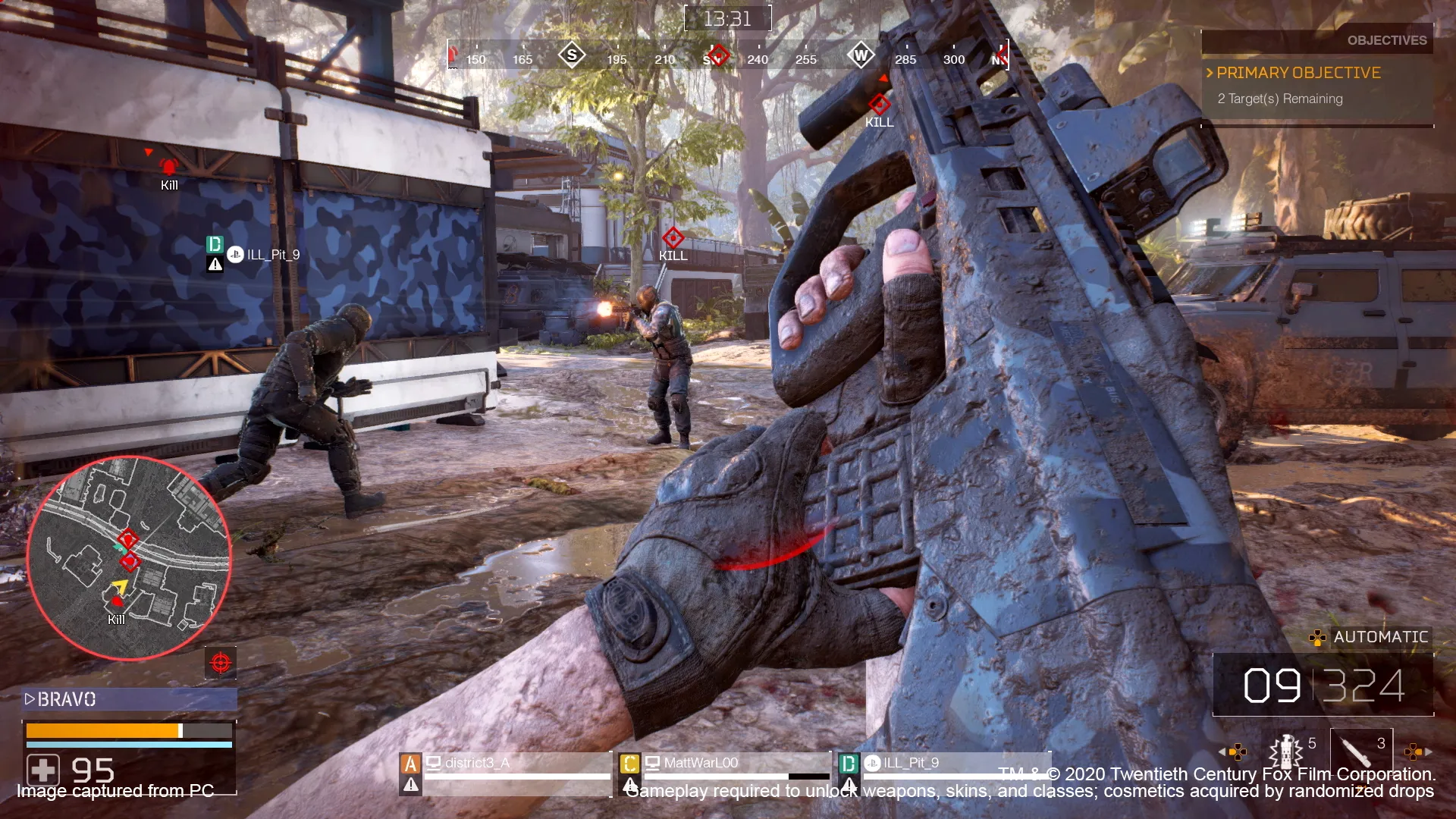 If you’re on the human side, you engage with the A.I. and predator in a first-person view. The predator gets to experience combat via a third-person camera, which gives you a bit of an edge if you’re playing that role. It fits with the creature’s enhanced perception, which is further upgraded with its infrared vision. When activated, you can scan the world for blips of heat, which mark potential targets. Learning which is human and which are A.I. is part of the challenge. Once I got the hang of the role, I loved engaging in the predator’s “poke and retreat” style of combat. Jump in too early, and you risk giving up your position. The predator is formidable, but it’s not invulnerable; a focused squad can make short work of you if you’re sloppy. Instead, you need to learn when to attack, when to follow silently in the trees, and how best to watch for openings. The trick is to be patient, but persistent. If you wait too long, you’re forced to play your hand as the team waits for the chopper – a position that leaves you more vulnerable than if you’d picked off your foes earlier when they were distracted with their checklist of tasks.