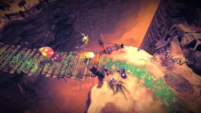 I like the look and sound of the world, but the layout can sometimes be frustrating, thanks to the procedural generation. Underground hallways filled with enemies sometimes turn into boring dead ends without rewards, and above ground, necessary switches might be difficult to find or reach. The later stages are particularly labyrinthian; I had one run where I killed every enemy and was just trying to find the exit while outrunning frequent lightning strikes, which eventually caught up with me and killed me. It just felt unfair. I never ran into game-breaking procedural generation, but the annoyances were enough to make me pine for hand-crafted levels.