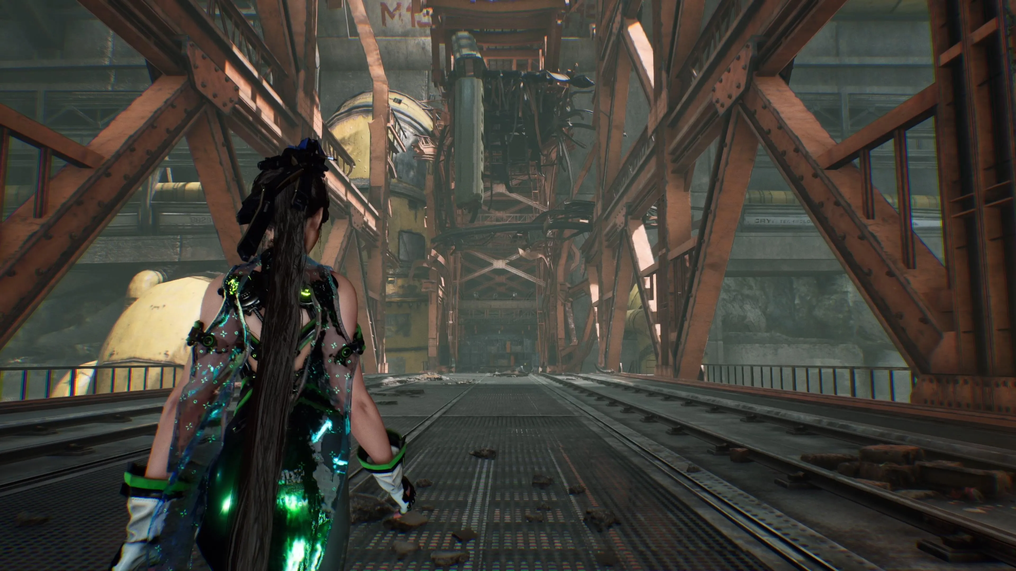 While combat is critical, other action and exploration experiences round things out. Platforming can be enjoyable, with thoughtfully hidden optional secrets to discover. The jumping sometimes feels floaty, and it’s too easy to get caught on geometry in the environment, but it only rarely causes big problems. Other sequences, like grinding at high speed down a rollercoaster or slipping past a laser security grid, help to keep things fresh, if occasionally frustrating.