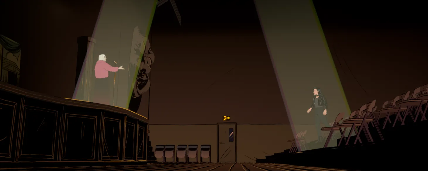 The cast is led by Laura Bailey's Grace, and while she never drops the ball while acting, there were a few instances where I thought her skillset as a singer didn't exactly match the songs she was singing. In some songs, like in an early confrontation with Persephone, certain selections cause Grace to slip into a faster, rap-like cadence. She's phenomenal at belting and singing more typical Broadway-style songs, but when things get too fast she's definitely out of her element. It's hard to say if it's the lyricism of the section or Bailey's discomfort with the style, but these moments fell short of the standard the rest of the game was able to achieve. Luckily, the game's design allows you to pivot away from a part of a song you don't like – just select a different color at the next decision path and hear a new style you might prefer.