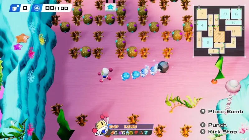 As you destroy blocks, you level up to gain experience and unlock new powers, but most of these powers don't mesh with the design of this mode. While the abilities to punch bombs over walls and move faster are both useful, increasing your bomb's explosion size often felt like an inconvenience, rather than an upgrade. Unfortunately, you get no say in which abilities you want to upgrade, because they're automatically unlocked at certain levels.