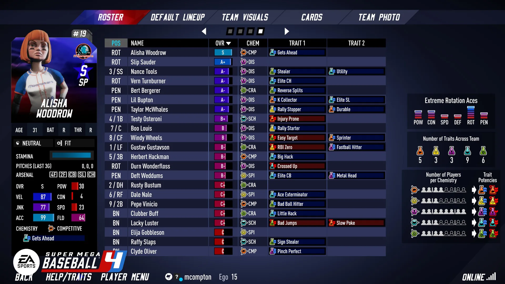 Conversely, when it comes to team management, Super Mega Baseball 4 shines perhaps brighter than any other sports game to date. With hundreds of fictional players and real legends, the game already features a respectable roster even without the MLB license. However, I wanted to pay homage to the ‘90s era of baseball from which this game draws inspiration, and Super Mega Baseball 4 enabled me to do more than I even wanted, allowing me to customize every player’s looks, gear, animations, music, and abilities, plus the uniforms and logo of my team.