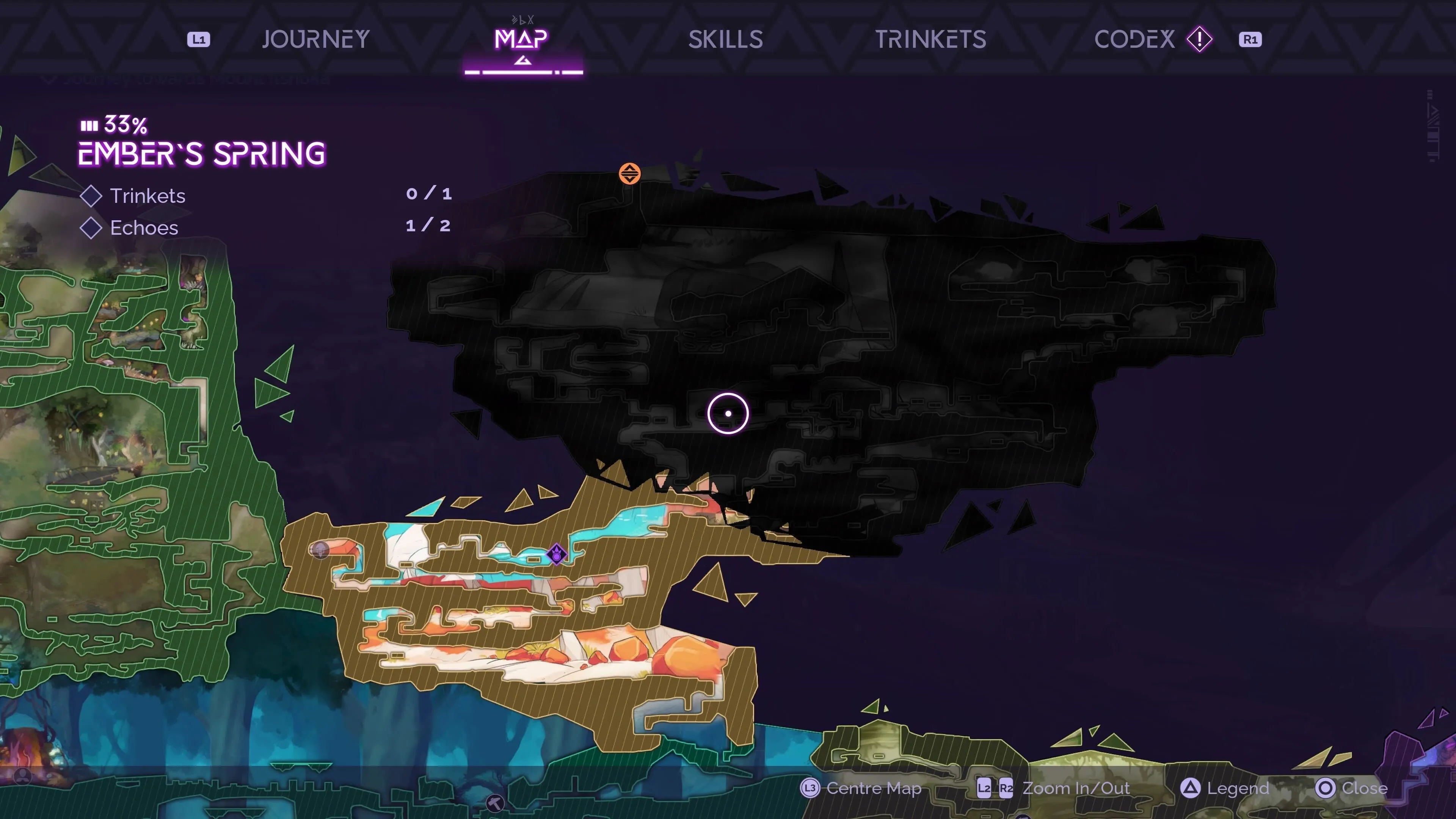 Tales of Kenzera's main flaw is its map and world designs, which turn a pretty good game into one that's uninteresting and unintuitive to explore. While most games obscure sections of the map until players explore them, Tales of Kenzera opens up an entire zone as soon as you enter a biome. It's a minor convenience for navigating through the main plot but a nightmare for figuring out where you have and haven't been. There's no way to mark the map or see where you've previously visited, save for icons that mark collected items, so in some cases, it's actually more difficult to backtrack to find secrets.