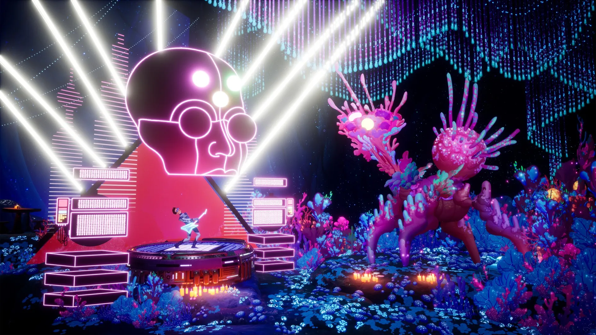 The performance mini-games are hard to mess up. From small jam sessions to stellar concerts, the rules remain simple: hit a series of notes by pressing the five corresponding buttons in the correct order. There is no set timing and no fail state, but like the platforming sections, the on-screen effect of this simple game is fantastic. Amidst reactive laser shows and bursting pyrotechnics, I found it easy to feel like I was actually the galaxy’s shining star performer.