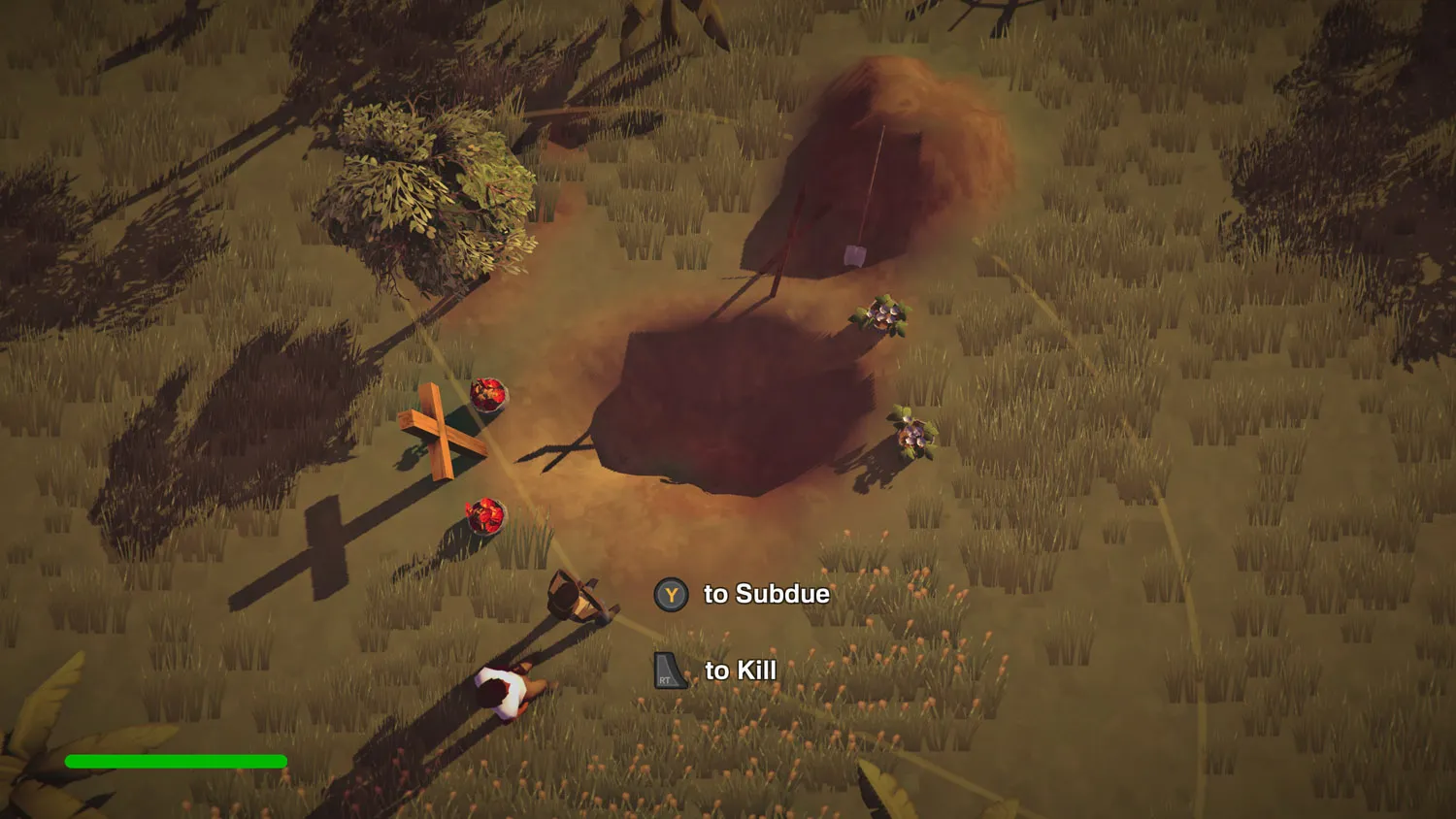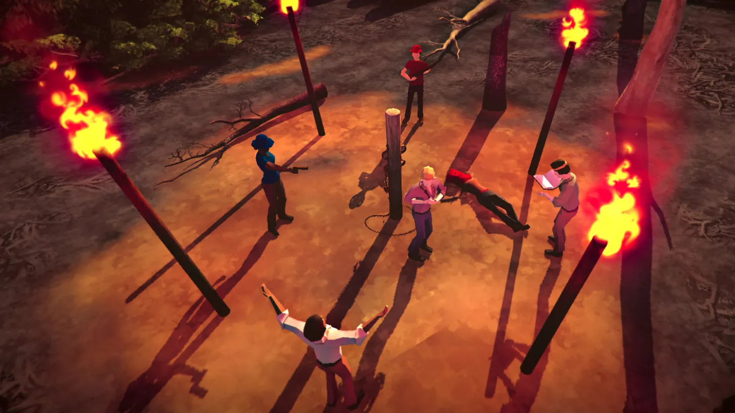Because your options for dealing with the cult are limited, it doesn’t take long to exhaust the most sensible solutions. It’s kind of like being handed a few slices of bread, ham, and cheese and being asked to make a meal out of it. A ham sandwich is the obvious answer. A cheese sandwich is also viable, if a little less exciting. But then what? Put the bread in the middle? Going out of your way to discover less-than-ideal solutions to a problem you’ve already solved a dozen times isn’t fun when you’re confined to such simple mechanics. Ultimately, the most memorable endings I ran into were not intentional. On more than one occasion I had a playthrough grind to a halt because Alex cornered me behind a church pew or a tree with no way to bypass him other than knocking him out. It may qualify as emergent storytelling, but not in a satisfying way.