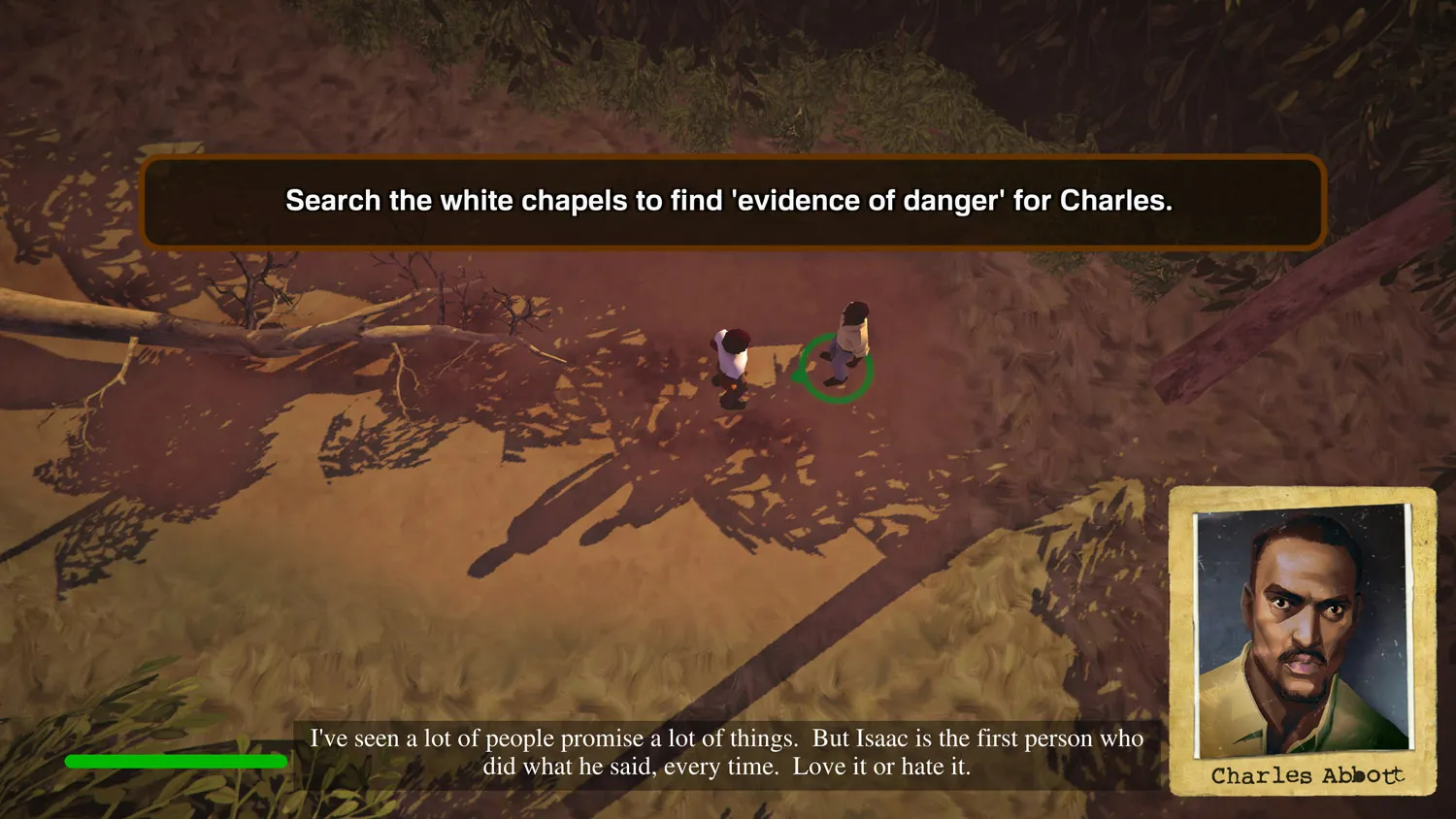 Unfortunately, The Church in the Darkness doesn’t fare much better from a story perspective, either. Because Isaac and Rebecca’s personalities change each playthrough, you need to surmise the threat they pose as you search for your nephew, then respond accordingly. However, these personality differences are mostly binary – either both Isaac and Rebecca are “good,” both are “bad,” or the two are split one way or the other. Which versions you’re dealing with isn’t particularly hard to deduce; various notes and documents you find while scavenging offer clues, as do conversations with NPCs. When you do finally find Alex, his posturing is a dead giveaway; he’ll either want to stay, leave, or be undecided based on which scenario you’re dealing with.