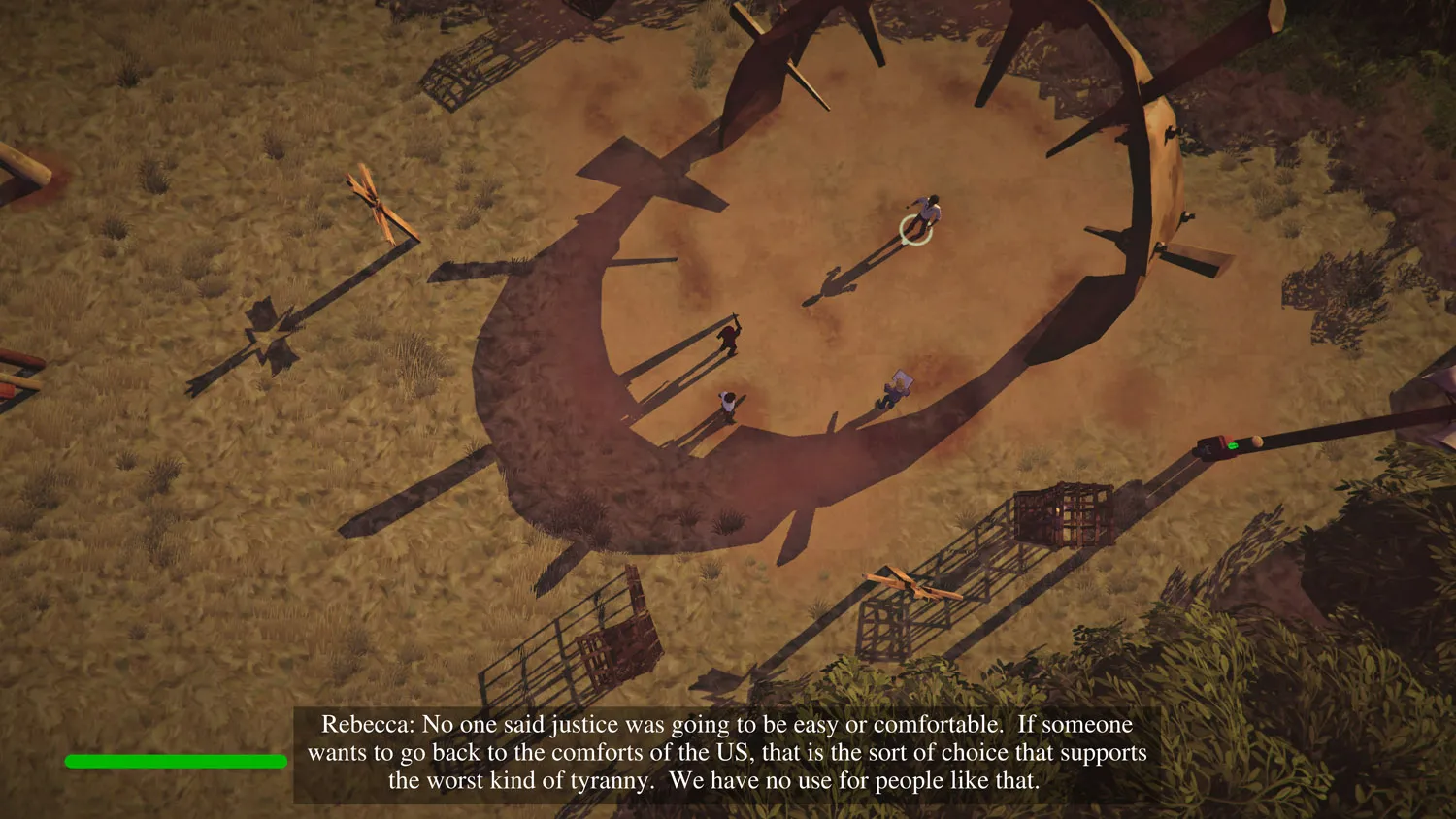 My biggest beef with The Church in the Darkness, however, is a pragmatic one: Isaac and Rebecca’s propaganda blares continuously over the loudspeakers scattered around Freedom Town, and you start hearing the same repeated diatribes on capitalism, inequality, and military aggression on your first playthrough. Those hoping for a unique take on cult behavior and theology should look elsewhere, as all of the themes are painfully familiar and as nuanced as an angry J. Jonah Jameson rant. These messages aren’t just annoying – they also muddy Isaac and Rebecca’s personalities. While the procedural generation tosses in a few lines specific to their personalities for a particular playthrough, the vast majority are pulled from a far too limited pool of generic recordings, making runs blend together. After several hours of listening to the Walkers’ greatest hits on repeat, I was ready to leave Freedom Town for good.