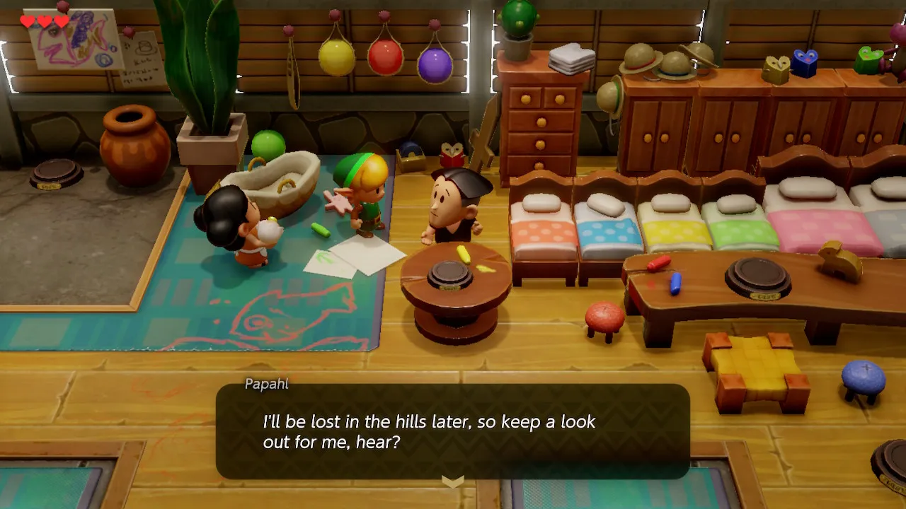 Rather than trying to recreate the sprites from the original version or making them adhere to the same presentation in A Link Between Worlds, Nintendo started from scratch in an unexpected way. It looks as though you’re engaging with a tiny plastic diorama; characters have a glossy sheen, and there’s an exaggerated depth-of-field effect that reinforces the illusion. It’s delightful, and it perfectly matches the story’s whimsical tone. This is, after all, a game where you help a goat and SimCity’s Mr. Wright cultivate a pen-pal relationship. The dialogue is as snappy as ever, with fourth-wall-breaking moments that still hold up today.
