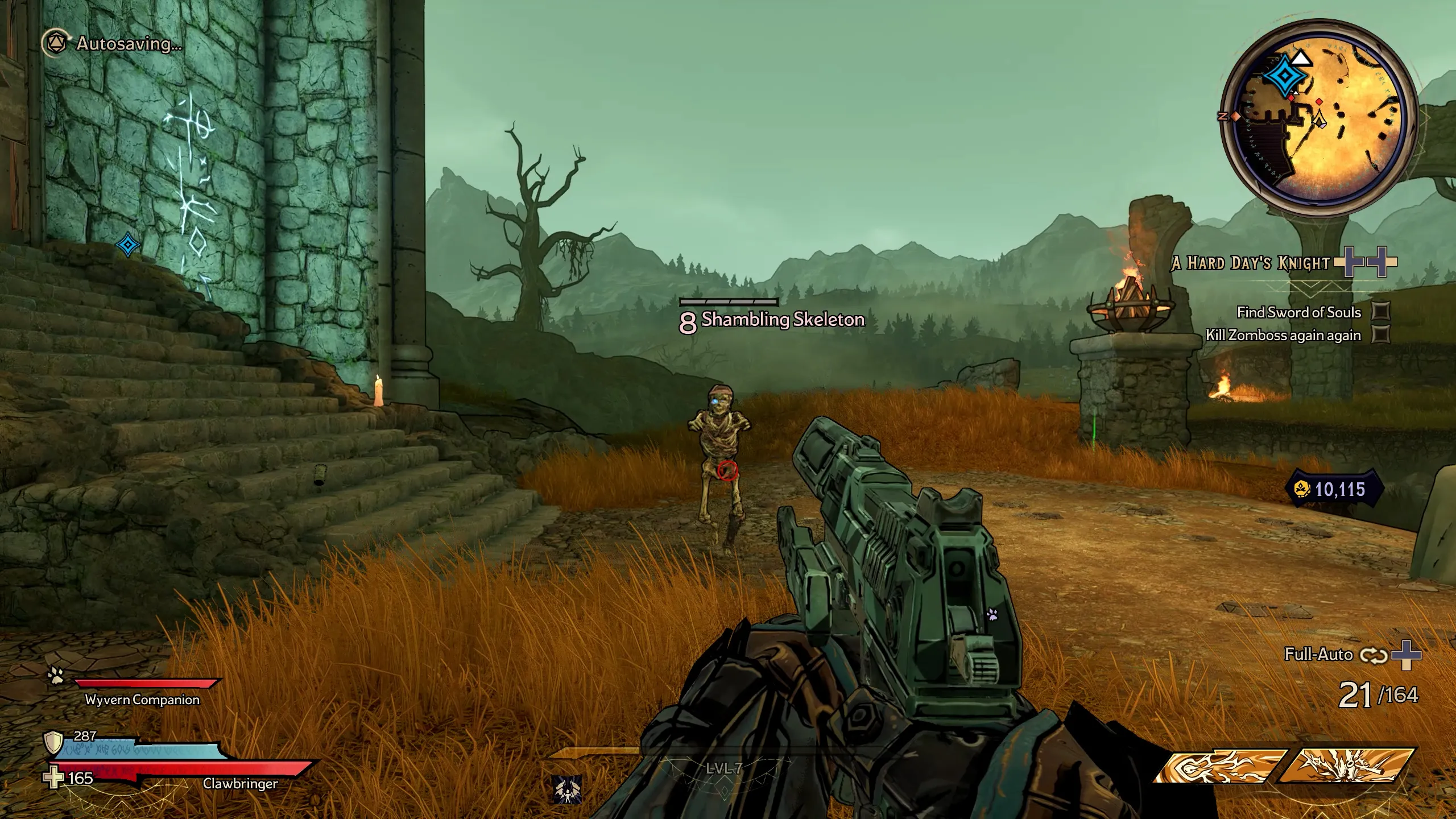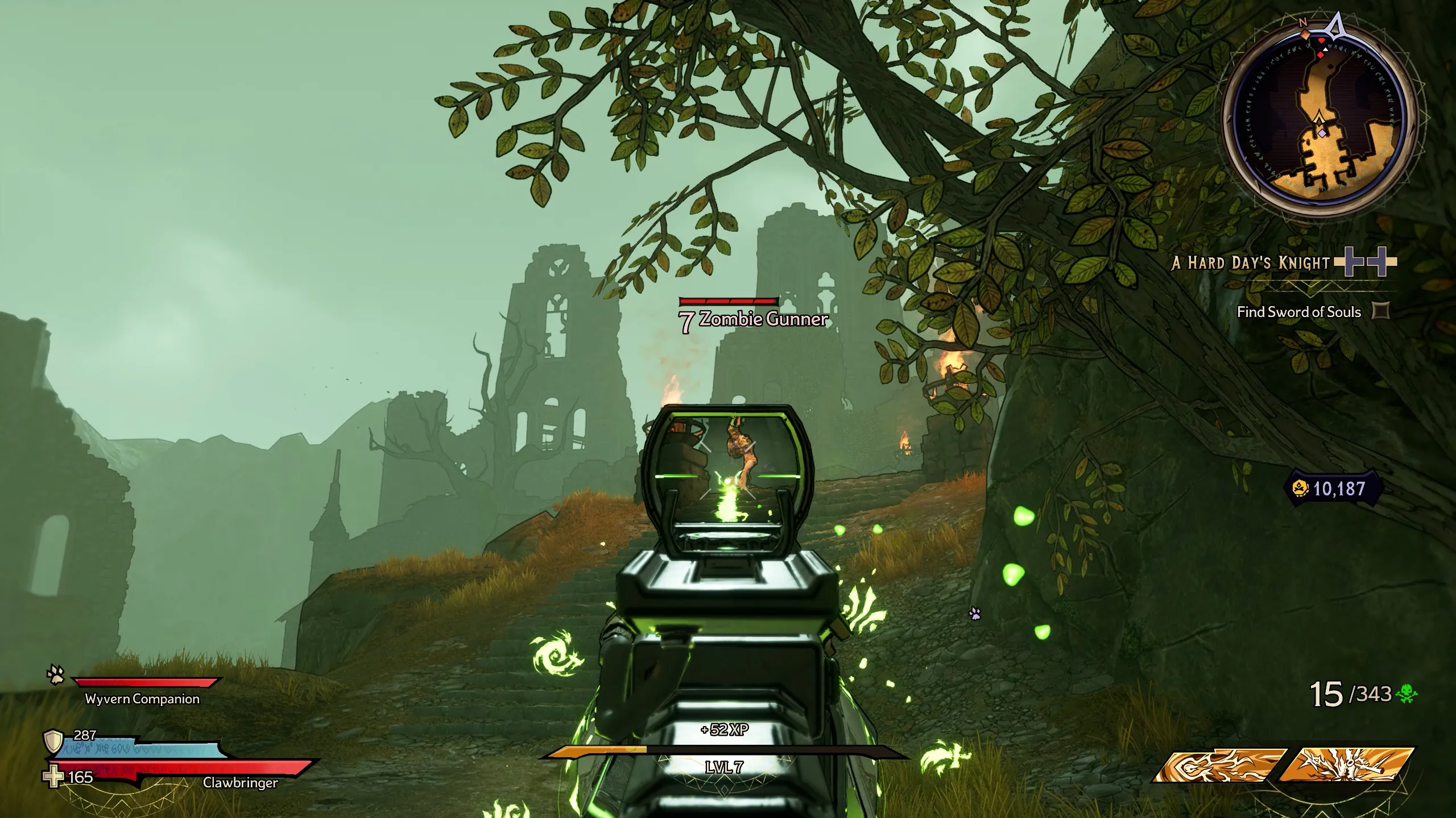 The missions draw you in with humorous setups and shine in combat, giving good reasons to unleash everything you have in your arsenal. Borderlands' overindulgence in weapons is alive and well in Wonderlands and is made better with the wide selection of spells. The gunplay is highly polished and feels like Borderlands, but packs more of a punch through the fantasy elements. For instance, in a battle against land sharks, I alternated use between a crossbow that fired explosives and an acid gun that chained enemies together in a gooey spray. My pet wyvern barfed fire on these foes as it swooped onto the battlefield, and I added elemental chaos to the mix by firing electrical crows from my fingertips. If an adversary somehow survived this frenzied onslaught, I could smash them with a massive hammer that creates an earthquake. You start the game plenty powerful and reach the point of being a ridiculous war machine at the midway point when class blending is enabled – a proposition that is downright awesome.