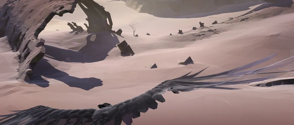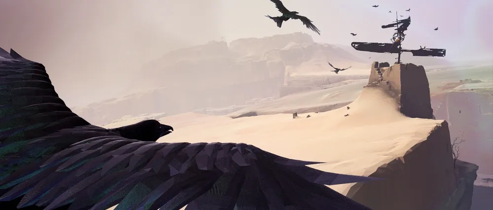 After the impressive opening, you are suddenly in a quiet, storm-free desert – and you are a bird. You make your way forward along a deceptively linear path. As a bird you can fly anywhere and land in certain places, but you can also transform into a child who explores on foot. Much of the gameplay and puzzle solving revolves around swapping between bird and child forms. Flight gives you the chance to explore large areas and plan out puzzle solutions without restriction, but the child can actually move objects and pull switches. Controlling the protagonist is harder than it should be in both forms. The camera is erratic, making it difficult to land when you are the bird, and the child often gets hung up on geometry while the camera clips through the environment. I also had to restart one puzzle multiple times as the A.I. put in place to assist me would inexplicably lose its motivation or get stuck in corners. The immersion was constantly being broken when I should have just been looking around in awe.