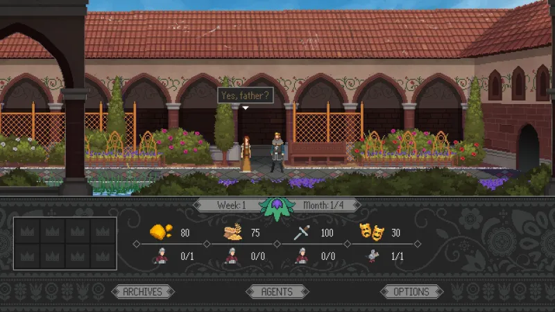 Despite these maddening occasions, Yes, Your Grace paints shades of gray and asks interesting questions. Before one battle, I paused when I needed to chooses between two untrustworthy allies: One saved countless lives on the battlefield but abuses his wife, and the other’s whole persona is a lie (but that fabrication makes people feel better). Yes, Your Grace is a somber tale, and there aren’t “good choices.” The game has multiple endings, with some being more satisfying than others. But just because you have some choices doesn’t mean you can avoid the hardships. What sticks with me the most about the experience is how I was forced into horrible circumstances because I had no other options. It feels as awful as you’d expect, like when I had to turn away a starving community because I couldn’t spare the funds or an agent to help them rebuild. Sometimes I aligned with people I wasn’t sure were noble, just because I needed help. Even though this aspect was disheartening, it also works for the role you’re in – a king will always have to make sacrifices and Yes, Your Grace does a fantastic job at showing this plight.