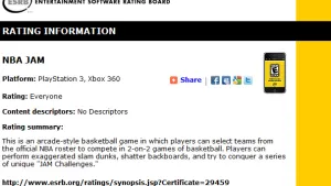 … ESRB Blows Cover Off NBA Jam Xbox 360, PS3 … The game has been rated for platforms that weren't yet announced. … ESRB Blows Cover Off NBA Jam Xbox 360, PS3 …