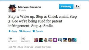… Minecraft Creator Facing Patent Lawsuit … The creator of Minecraft, Markus "Notch" Persson, is facing a patent lawsuit, but he doesn't seem to mind too much. … Minecraft Creator Facing Patent Lawsuit …