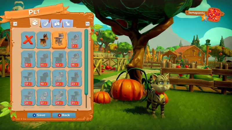 If you are just starting out some of the unlockable content cannot be found mid-game. You'll need to back out of your farm to the title screen to access the customization options, which give you a cat or dog, allow you to design your own tractor, outfit, and more.