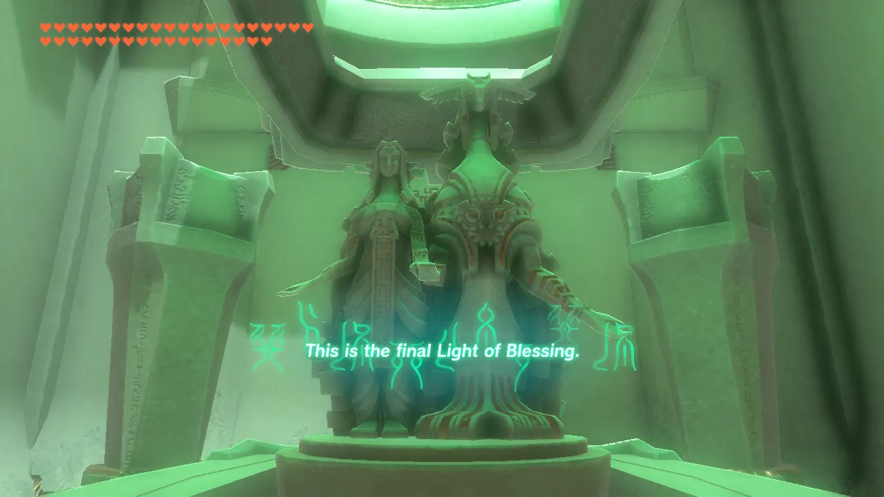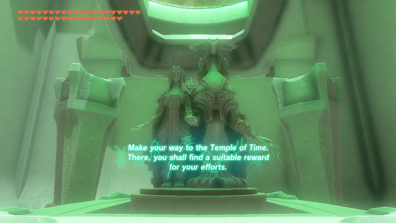 After skipping the two cutscenes that play at the end of every Shrine for the last approximately 165 hours, the final Shrine shows some unique text and suggests the player visit the Temple of Time for a reward.