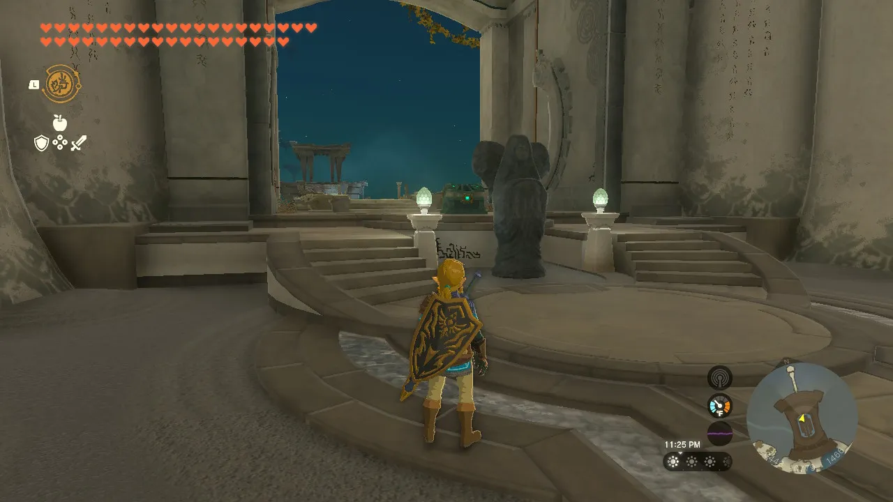 The Temple of Time is located on the island where you began your Tears of the Kingdom journey and the King Raura and Queen Sonia statues are definitely not referring the Temple of Time ruins on the plateau. I don't know who would make that mistake and search the ruins for arguably too long for a reward, but you definitely want to go up into the sky. You will find a new chest behind the Goddess Statue.