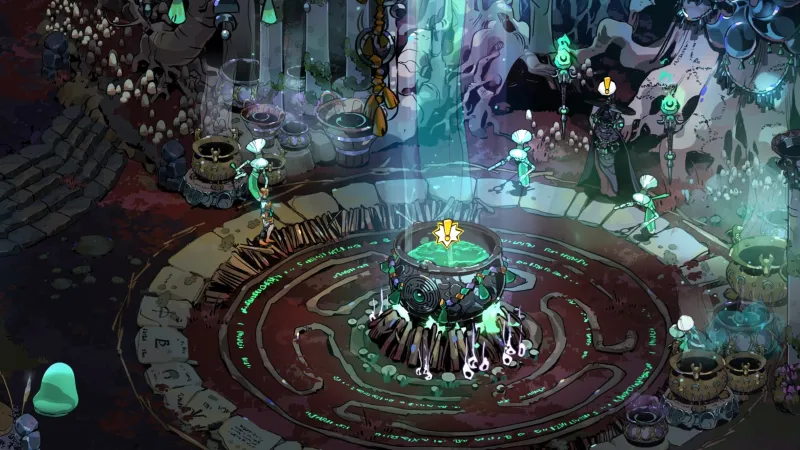 The Crossroads features a giant cauldron situated in front of Hecate. This is where you’ll bring resources/currencies gathered during runs to perform “incantations,” which are permanent upgrades for The Crossroads and general quality-of-life perks.