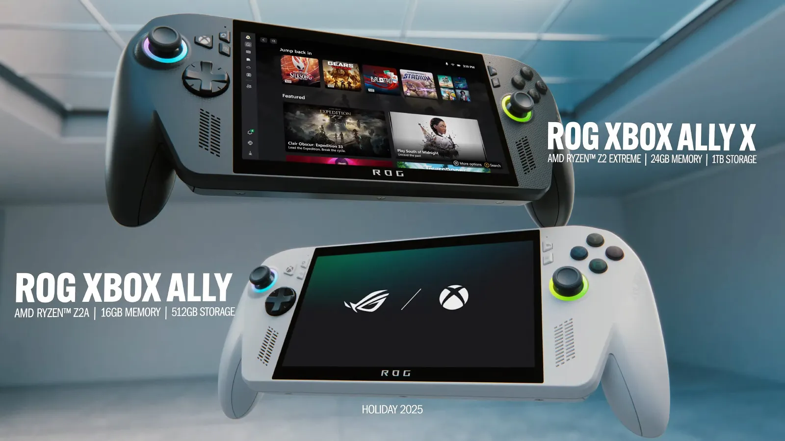 There will be two models available. The ROG Xbox Ally X is black, has an AMD RYZEN AI 72 Extreme chip, 24GB of memory, and 1TB of storage. The ROG Xbox Ally is white, has an AMD RYZEN Z2 A chip, 16GB of memory, and 512GB of storage.
