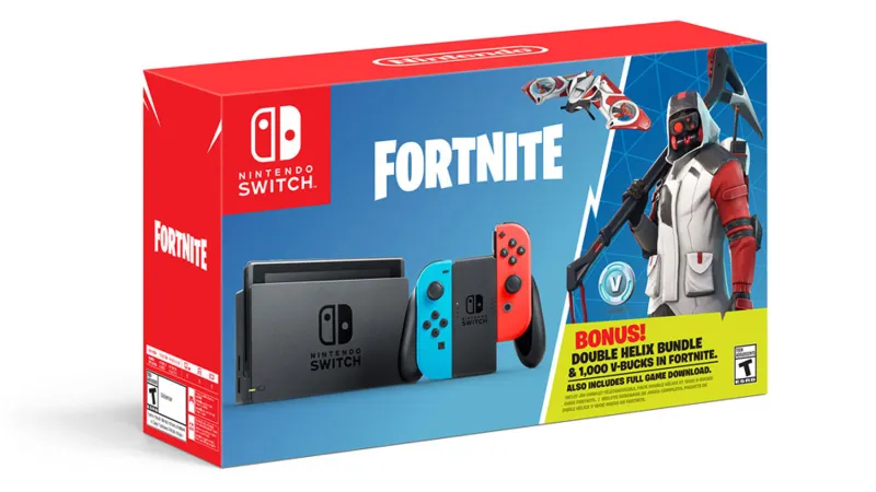 The Double Helix Bundle includes the Switch console and some in-game Fortnite goodies that are valued at $45. They include a unique Double Helix outfit, Telemetry back bling, Pinpoint pickaxe, and Rotor Glider. In addition, players get 1,000 V-Bucks, the game's premium in-game currency.