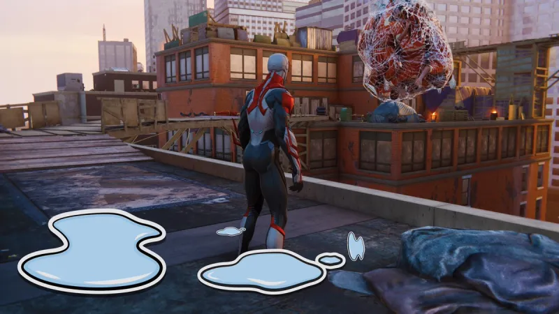 Now, using photo mode, you can add puddles in wherever you want. You can flood New York City in puddles. You can become the greatest Spider-Man villain of all, Puddle-Man.