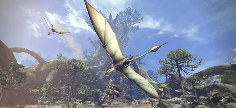 In Monster Hunter World, the slinger is an item always on your hunter and can be loaded with different ammo and used to grapple hook around places.