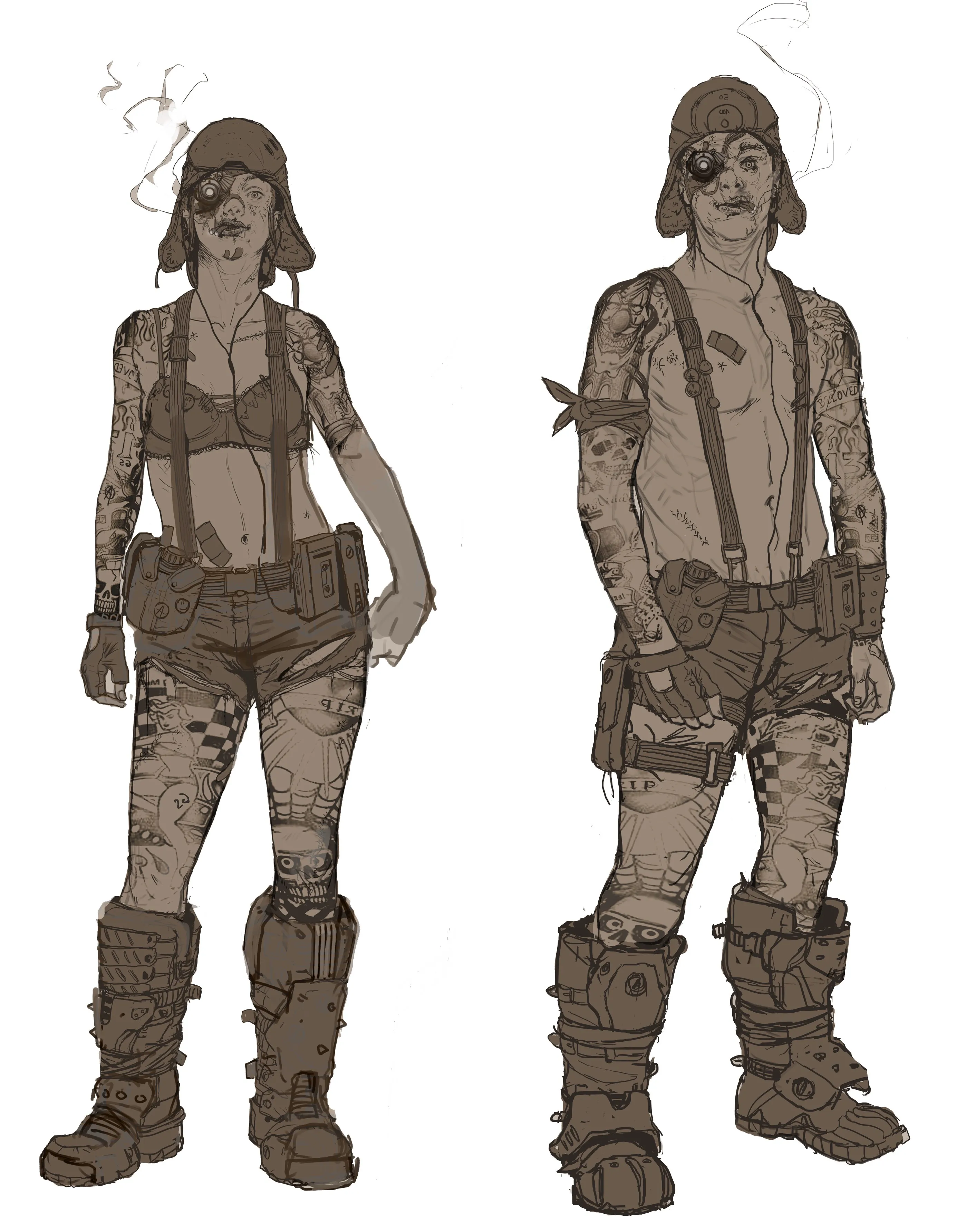 “Rage doesn’t have a resource problem. It has an insanity problem. The world is filled with stuff. There are computers and computer parts, glass, guns, and cars. If you want to get stuff, there is plenty of it laying around and underground… People have spent years taking all this stuff and hacking it together to get it into working order. So we have this weird leveling of all technology so you’ll see people with holograms and right beside, someone has taken old smart tablet and nailed it to a wall. The world has a lot of resources, but no one knows how to use it all and people are crazy.”