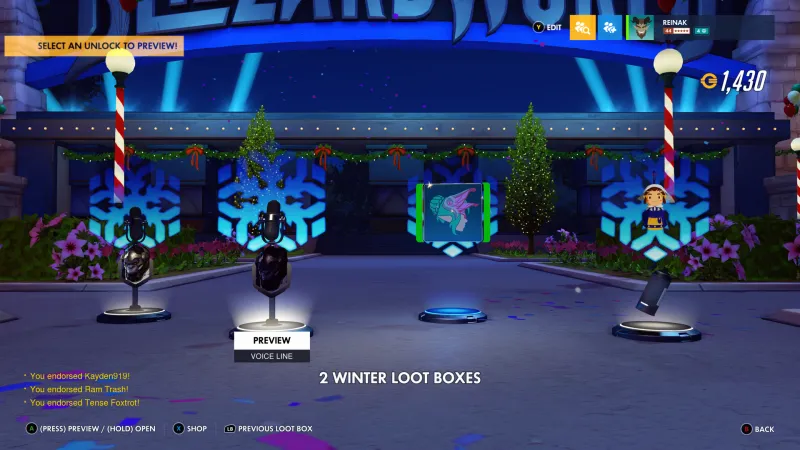The image above shows what we want to see from loot boxes. The image below shows what we usually get. If you're wondering what I got from my five free winter boxes, you're looking at the best of my haul above. I mostly got voice lines and sprays. Let us know if you score the Junkrat skin in the comments section below!