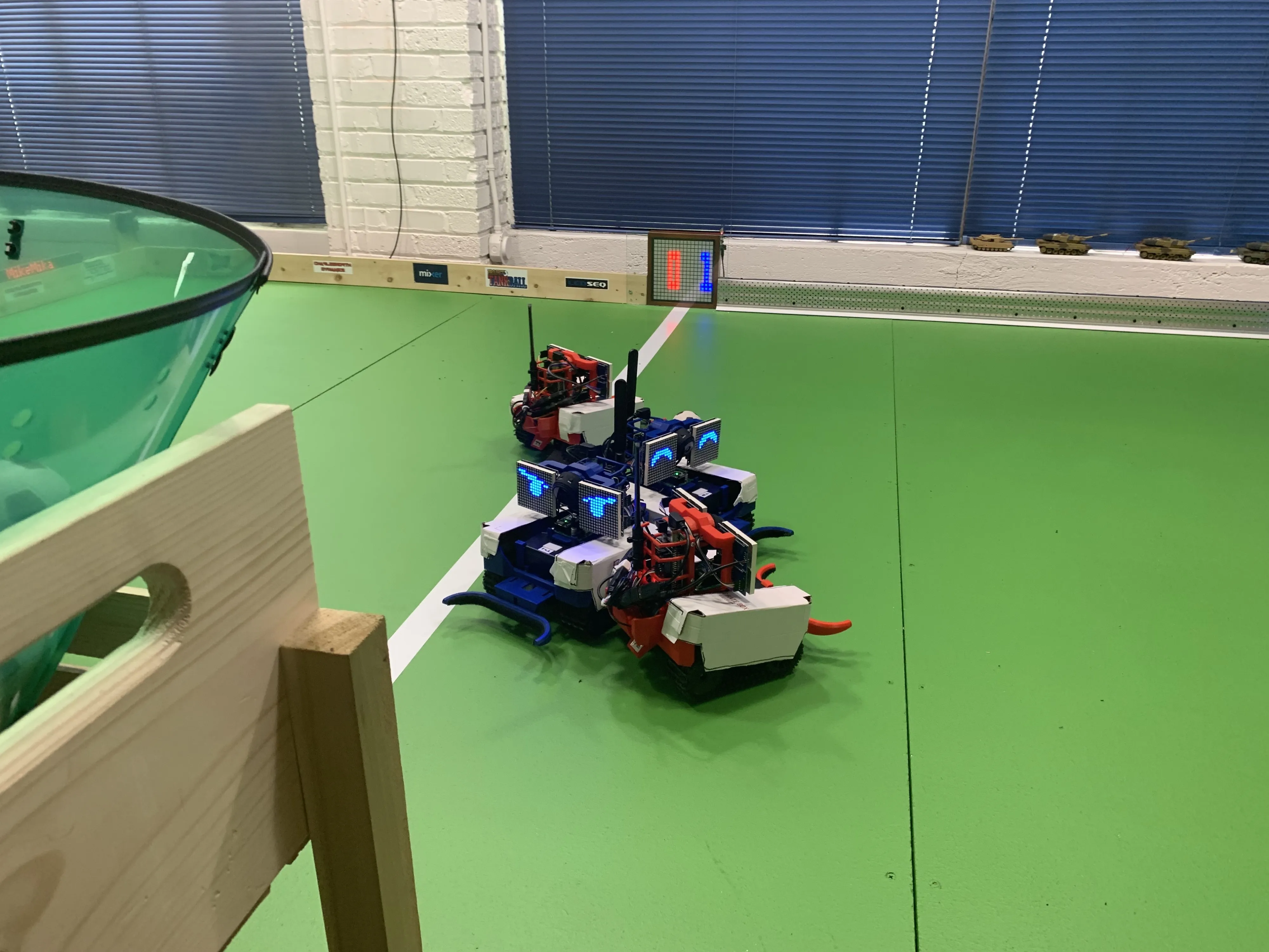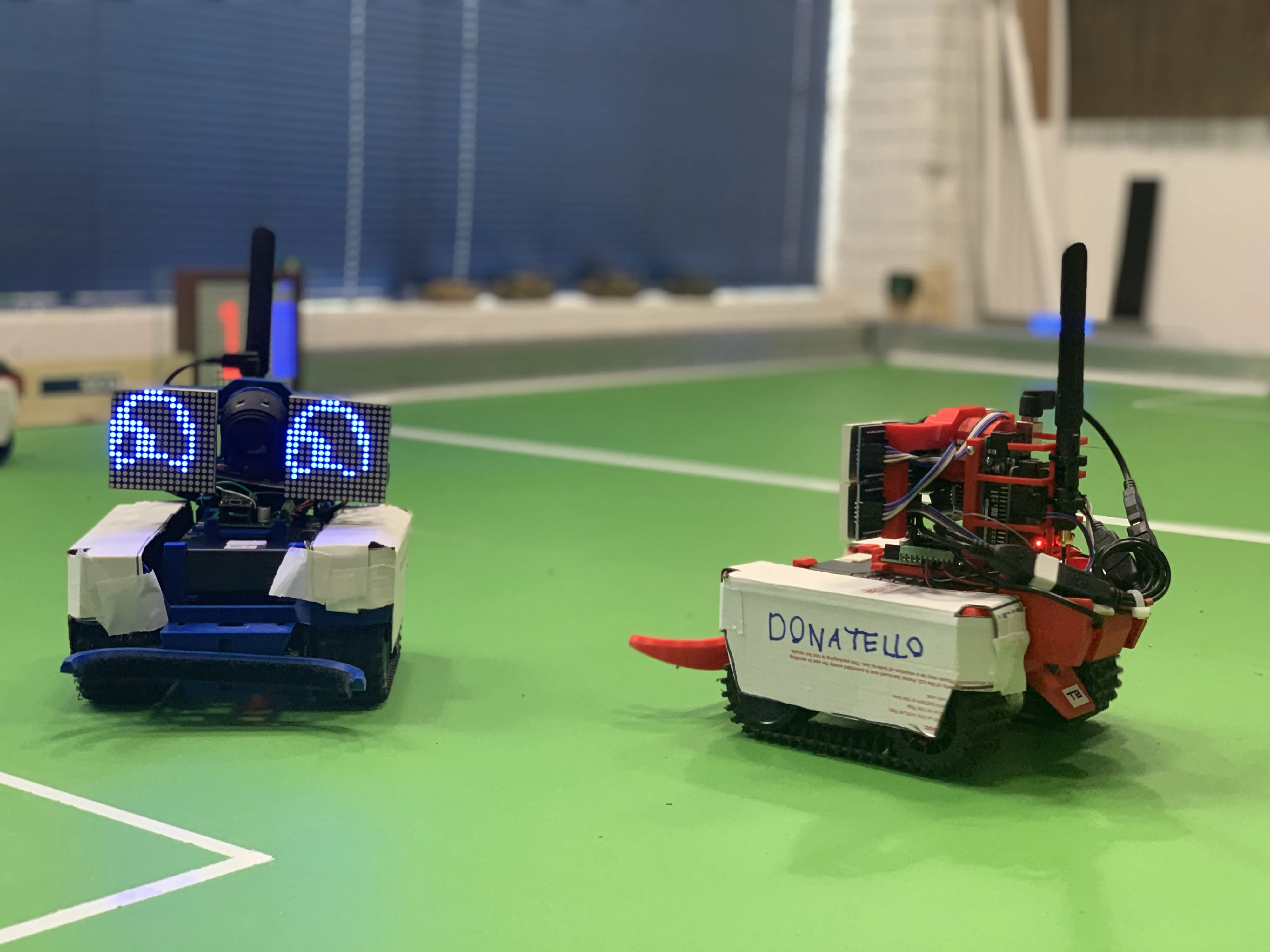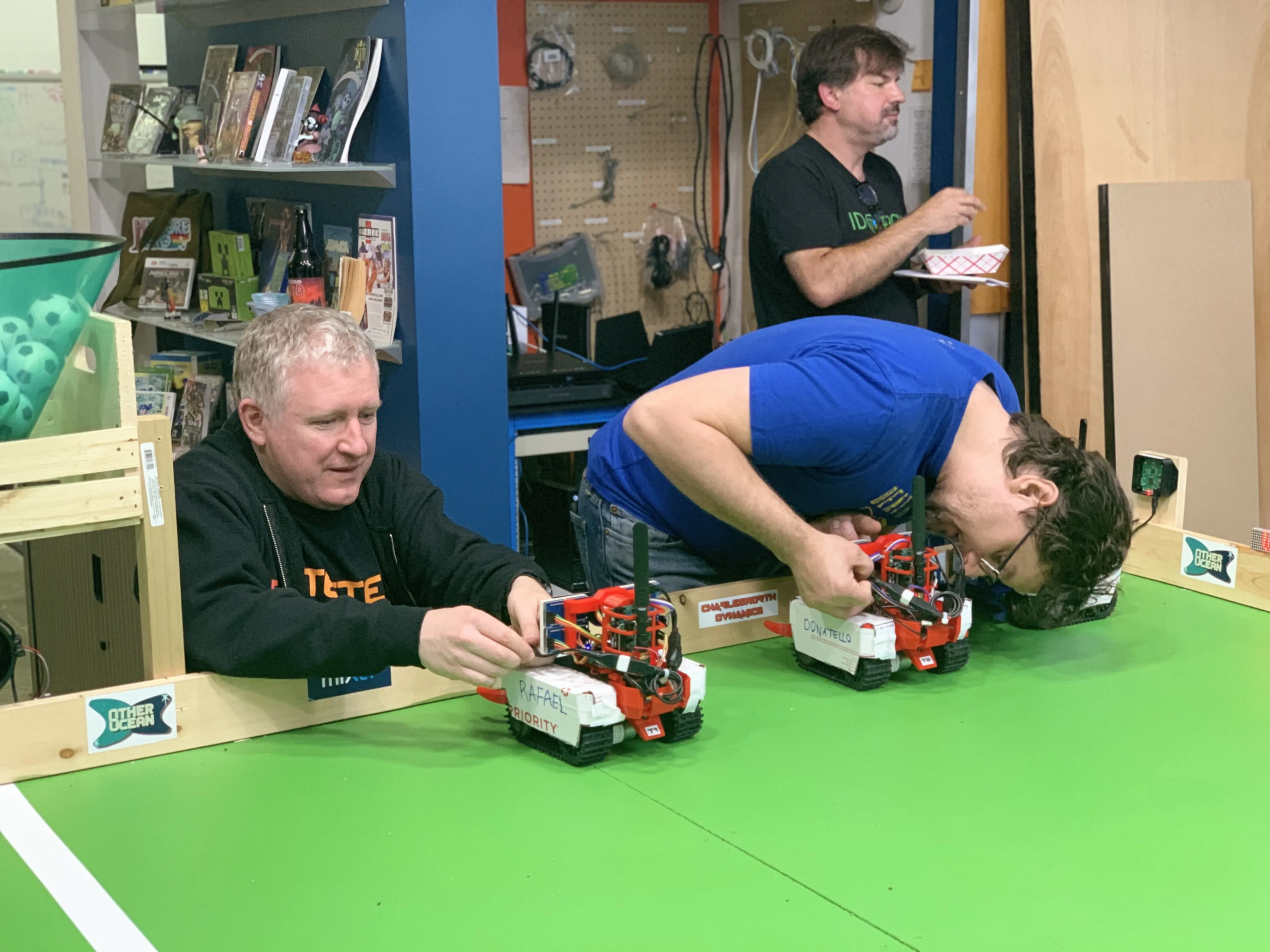 “We can actually do augmented reality with this,” Mika says. “Our original plan was like a first-person shooter with remote-controlled tanks, but the bullets wouldn’t be real. We’d augment the camera view with virtual bullets. We could go back to that concept. We can add fake damage on tanks, we could have one of the treads slow down like it’s damaged … we could also throw virtual oil slicks or turbo boosts onto the field and see how players deal with that.”