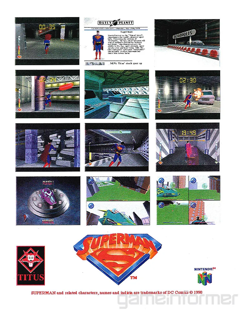 Superman 64 is considered by many as one of the worst games ever released. With frustrating gameplay mechanics from the very beginning, it's hard to argue against that notion. However, because of the widespread opinion within the gaming community, it has gained a level of notoriety, so we wanted to mark the occasion of its 20th anniversary with some neat finds from Game Informer's history.
