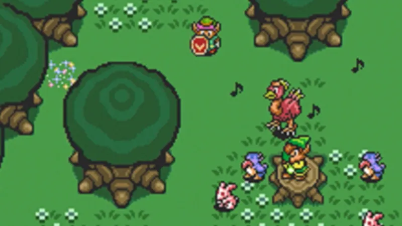 Hyrule in A Link to the Past isn’t a safe place for most people to wander. Monsters roam the land, and the influence of the dark world seeps into the light world. One of the victims of the darkness is the Flute Boy. Known for playing his flute in a meadow near his home, he went off in search of the triforce and hasn’t returned. The boy’s father asks Link to find his son, a journey that takes Link into the dark world.