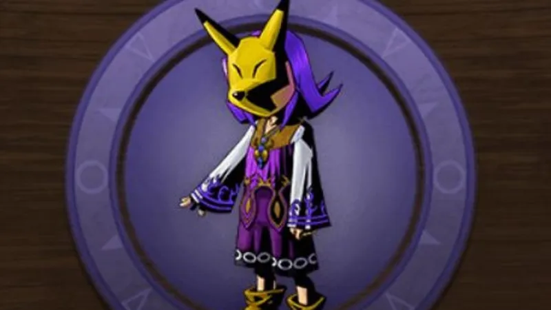 Grog can be found in Kakariko Village at night, sitting under a tree. He claims people are disgusting, citing his parents and Link. If you talk to him with a mask on, hiding your face, he opens up and tells you that he really considers himself a good man. The poor guy is just trying to be nice but has a hard time connecting with other people. If you return after becoming an adult, Grog has disappeared, leaving behind his pet Cucco Cojiro, who has not crowed since Grog left.