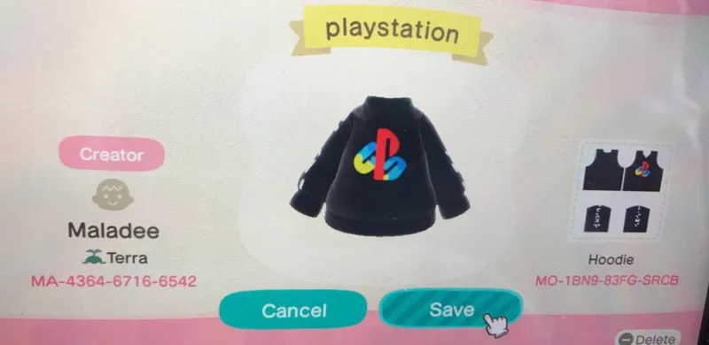 The second way just takes a little playing (and a Switch Online subscription). Once you unlock the Able Sisters' shop, you'll find a terminal that leads to the Custom Designs Portal. Here, you can enter a code (as seen on the images below) to download a specific item or see what a specific designer has made. You can also use this portal to upload and share your own marvelous creations.