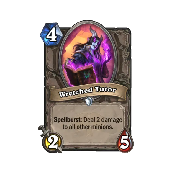 Not as exciting, but absolutely in theme is the spellburst mechanic. Found on non-spell cards, spellburst triggers when you have a spellburst minion or weapon on the board the first time you cast a spell - you can't just trigger the same card a bunch of times. Of course, this comes with some risk.