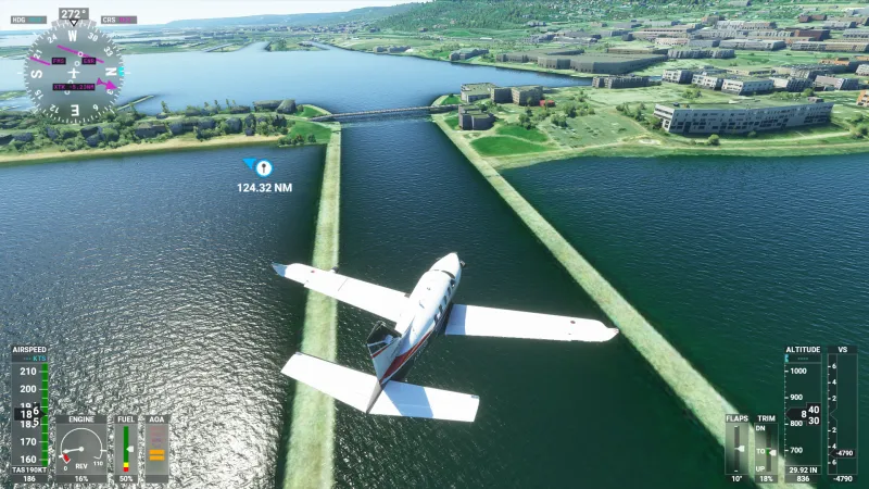 After spending about 40 minutes wobbling around in a mostly straight line (accompanied by lots of beeps and pop-up notifications about landing gear), I saw Lake Superior on the horizon. This was my chance to buzz the Aerial Lift Bridge, which, if you aren’t from the Midwest, is a cool bridge. Unfortunately, Flight Simulator 2020’s rendition of this landmark is a little lacking. If we’re being completely honest here, I think scrolling around Google Earth is probably a better way to get what I want from this thing.