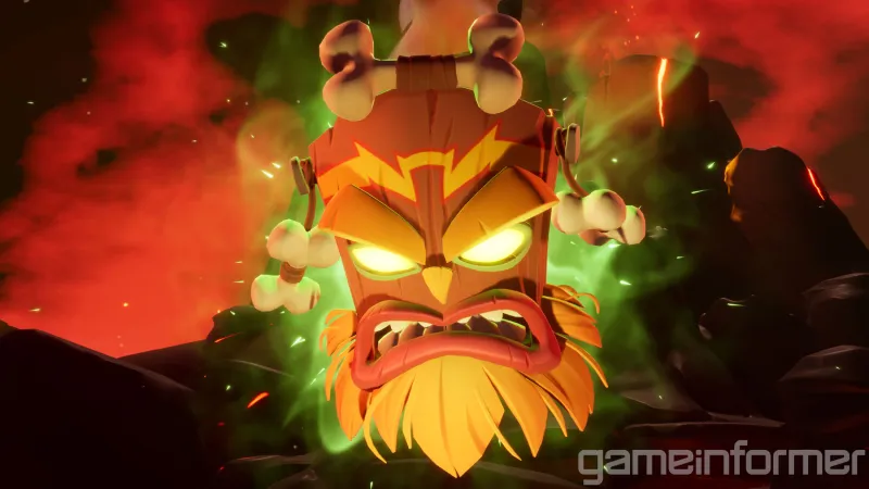 In an exclusive look for Game Informer, Activision showed me the final new mask. Named ’Akano (with the apostrophe), the wearer spins violently like a top or tornado. As you would expect, Crash and Coco can use this power to smash through crates and enemies with ease, but its biggest benefit is revealed when a jump is performed. Given the inertia behind the spin, Crash and Coco lift high into the air and then settle into a slow glide. The spin continues indefinitely, but can be stopped by a quick button press, leading to sections where you can run around like normal and then activate ’Akano’s ability to spin dangerously across a stretch of the stage.