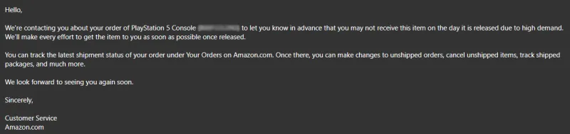 While currently the emails are specific to Amazon, it wouldn't be surprising if other retailers experienced similar issues. If you secured your preorder, we recommend keeping track of that order number and your email to stay up-to-date on any issues that could potentially arise.