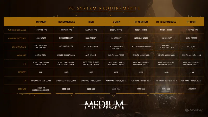 In addition to the gameplay footage, Bloober Team released an updated PC System Requirements chart for those who’d prefer to enter the spirit world on mouse and keyboard. You can see the image on those specs below: