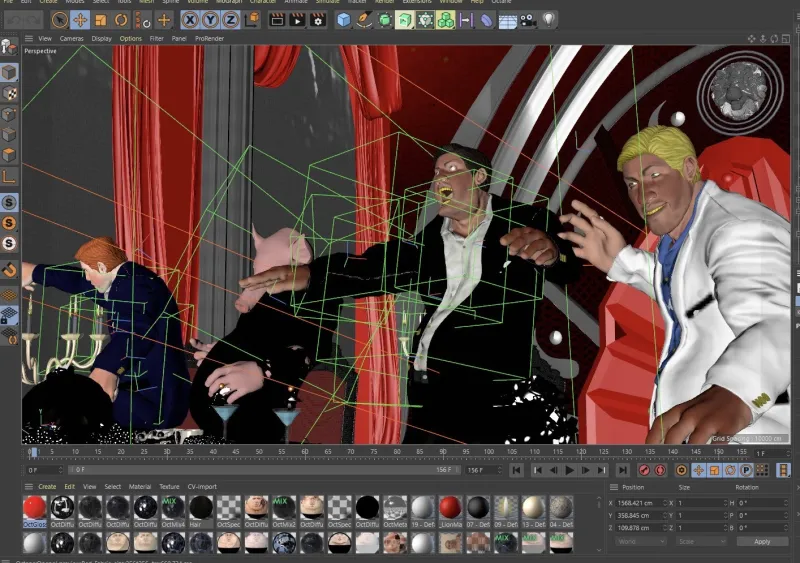 For the 3D models of each band member, Balderose used his iPhone to scan and create a texture map of each member's face, employing Morgan's sister to help stylize and shade each model. For the performances, the iPhone was used again, this time to record Morgan and vocalist-guitarist Reba Meyers singing "Autumn and Carbine" to track mouth and face movements.