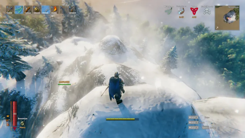 Yes, Valheim has some fairly hardcore consequences for death in that you need to run back to your body to recover your gear and items, but you can prepare for it quite well. Outside of that though, Valheim rewards you for interacting with survival mechanics rather than punishing you for failing to do so. Eating food makes you much harder to kill, providing hit point regeneration, stamina, and other bonuses – but you won’t die from not eating. You’re incentivized to find shelter and warmth from the cold and wet conditions, but these things won’t kill or damage you either. From a gameplay standpoint, this makes dealing with the world a lot easier. You know that if you’re going to be doing any difficult task like forging ahead into a new biome or taking on a boss you’re going to want to be fully rested with hearty meals in your belly, but you are not constantly nagged to death by hunger, thirst, or weather meters. This design shift is highly significant for alleviating excess player frustration in a hostile world.