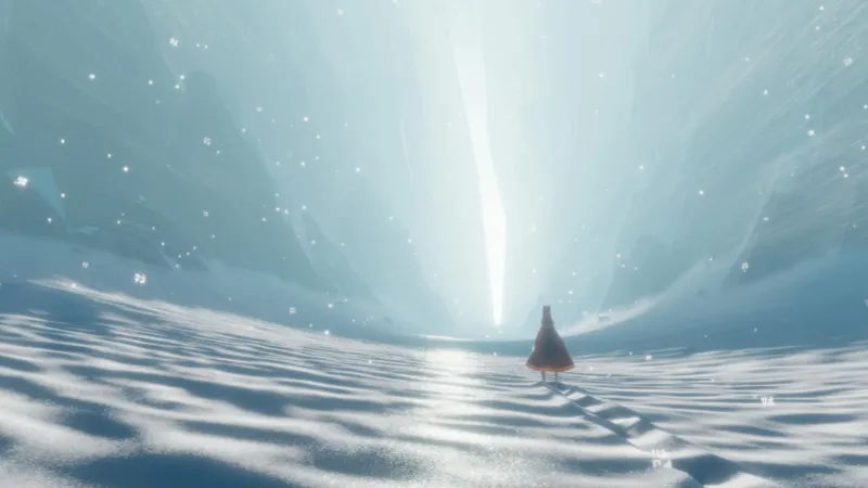 Journey begins with your character leaping through the sun-parched desert and gracefully sliding over the dunes. However, at the end of the game, that warm climate gives way to an icy, windy ascent that you can feel in your bones. As you trudge through the snow, chilly blasts of air slow you down, blow you off ledges, and practically erase the boundaries that confine your consciousness to your body. It’s not an easy climb, but it is certainly a rewarding one.