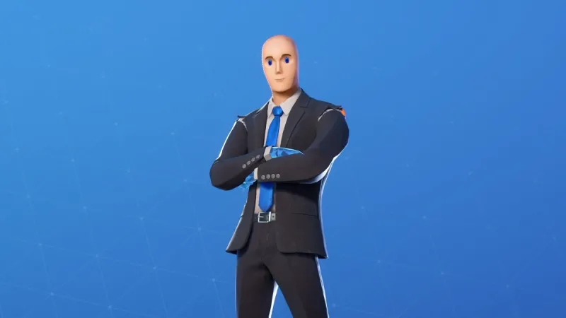 Of course he’s not simply called the “Stonks Guy.” In Fortnite, the outfit pack is fittingly titled, “Diamond Hanz.” The set comes with the classic Stonks Guy mannequin character donning his famous charcoal suit and light blue tie. His shiny hands (or are those really just gloves?) glisten like diamonds. But wait, who the heck is Stonks Guy in the first place? I'll tell you. He's a viral internet icon that symbolizes questionable fiscal decisions (hence the confident stature alongside the hilarious misspelling of "stocks"). You can check out the original meme below.