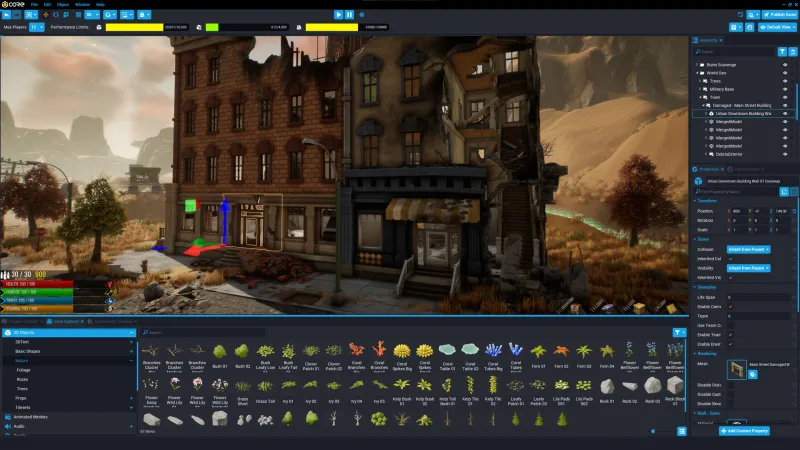 Core arrives as a free-to-play platform today (In early access) on the Epic Games Store. You’re probably wondering what Core is. If I distill it down to the base concept, it’s an online world where you can roam from game to game solo or with friends, using your core avatar and cosmetics as you move from experience to experience. Oh, and you can also make the games to play there too, with an incredibly robust and easy to use toolset that you can basically drag and drop assets out of the ether to construct a shooting arena, RPG farm zone, a dodgeball fight, a platformer, a MOBA, or whatever else you feel like making.