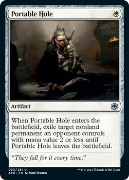 Portable Holes are always handy! While it's really just the kind of white enchantment removal spell (except it's an artifact!) that you expect to see in any set these days, it's packed with flavor. I expect to see a lot of that as set reveals start hitting next month. Other cards like Power Word Kill are flavorful both from a D&D context standpoint and quite functional within the MTG universe, which is interesting. And of course, there's the Baleful Beholder. We probably won't get the card text on this one for a while, but you can probably assume that it's awesome because it's a freaking beholder. And it shows off a sweet new card frame that's sure to appear on some other well-known D&D monsters!