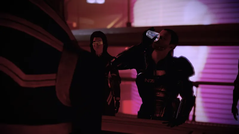 To say Ashley Williams isn't the most popular character in the Mass Effect universe would be a massive understatement, but if you enjoy this character and keep her until Mass Effect 3 you can opt into a pretty fun drink-off. There are several moments throughout the third game where Shepard can kick back and relax with the crew. With Vega, it's a pushup contest. With Ashley? Prepare to drink.