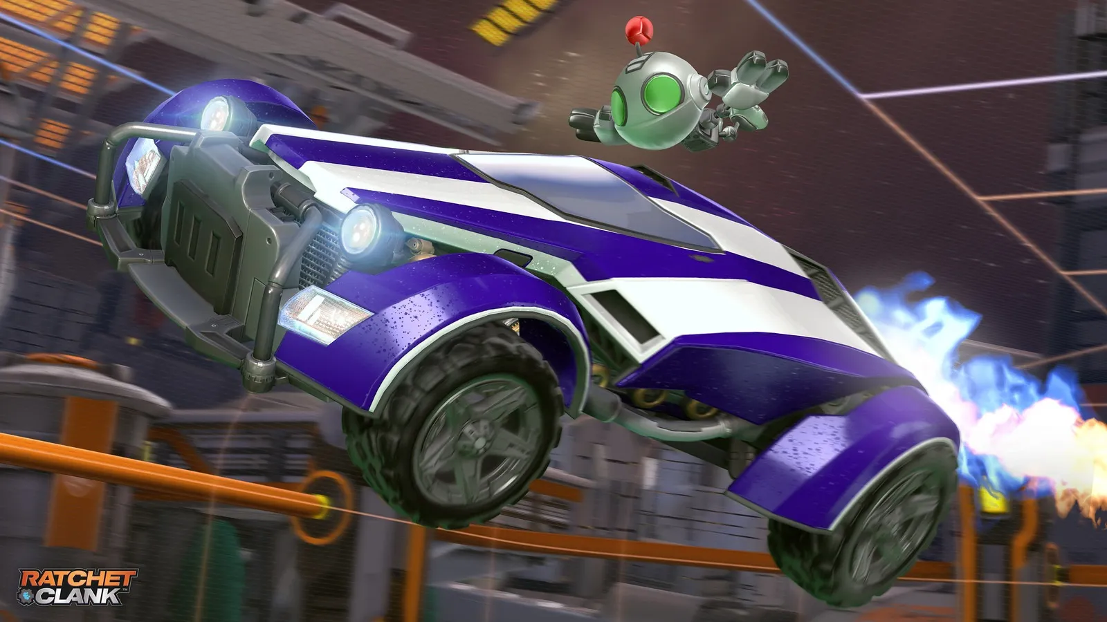 Rocket League, like other popular live-service games, is known for its crossover content drops. After a successful launch on PlayStation 5, gaming’s favorite lombax and tiny bot are taking the main stage in Rocket League. In addition to some Ratchet & Clank-inspired vehicle skins (pictured above and below), starting tomorrow, PlayStation 5 owners will be able to drive around their favorite arenas fluidly in 120 FPS.
