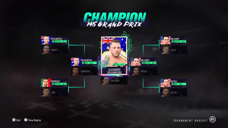 Sometimes, EA Sports UFC 4's predictions go how many people think they might. While several people still consider Max Holloway the best fighter at featherweight, Alexander Volkanovski once again showed why he's the one who holds the belt at 145. Volkanovski defeated Holloway for what would be a third time. Featherweight is another division stacked from top to bottom, with Brian Ortega, Yair Rodríguez, Calvin Kattar, and Chan Sung Jung filling the field. Still, as we've seen time and time again, Volkanovski and Holloway are just on another level.