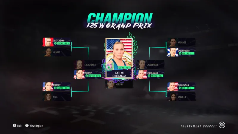 However, the video game had other plans, as Lauren Murphy (who, interestingly enough, is scheduled to be Shevchenko's next title defense in September) pulled off the big upset in the semifinals. Unfortunately, Murphy could not carry that momentum into the championship fight, and longtime contender Katlyn Chookagian took her out with a fourth-round KO.