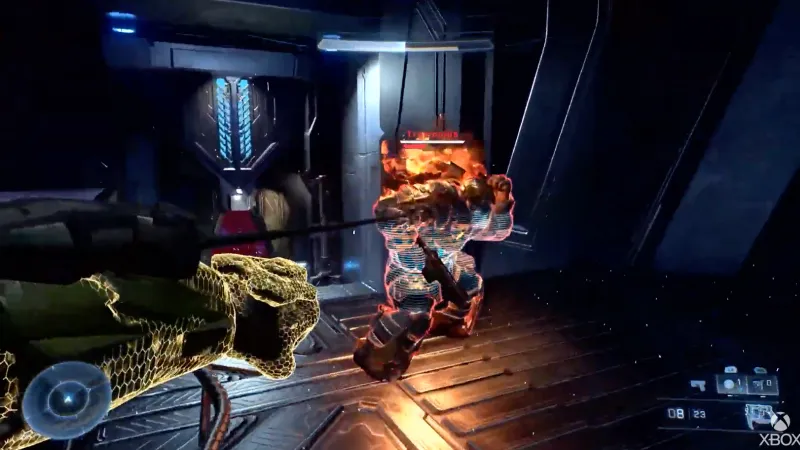 Speaking of enemies, this campaign overview video also showcased something entirely new for the mainline Halo series: bosses with health bars. In the video, we see Chief taking on a brute boss with a white bar (presumably a shield) and a red bar underneath it, which appears to be the boss' actual health. That was the only boss with a health bar showcased, so it's unclear if we'll encounter many bosses with health bars or if that fight is a one-off thing.