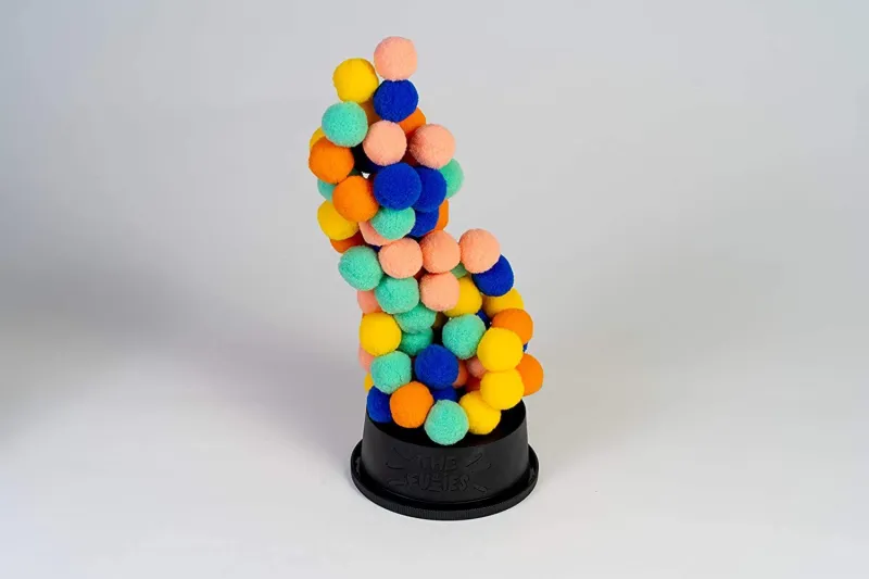 Looking to introduce the kids to their first dexterity game? Fuzzies is a wonderful twist on the stacking/pulling tower concept, but with a far lower threshold for angrily thrown wooden blocks than in a game like Jenga. Instead of blocks, Fuzzies features a tower of small fuzzy multi-colored balls. After packing them into an included tall cup, they can be stacked onto a base, and the cup removed, leaving a perfectly formed (and sort of adorable) mass of clumped-up color. Players use tweezers, or just their fingers, to remove a ball and place it back atop the tower. Knock some balls off, and you get a silly challenge on your next go, like having to use your non-dominant hand. This one is simple, fast, and if you strip out the card challenges, can be played with kids even younger. Just be prepared to spend a few minutes at the end of your play session gathering errant fuzzies – they’re sneaky little guys.